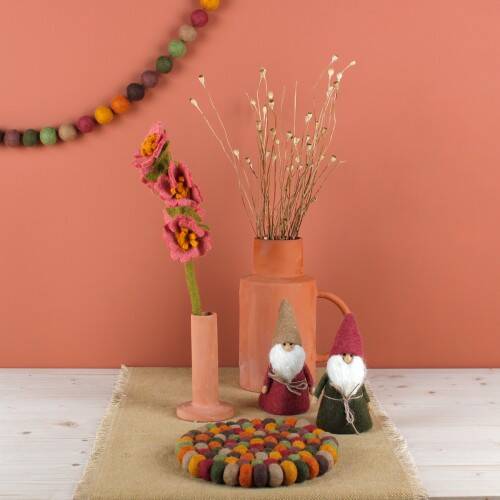 Je hebt deze mooie vilten onderzetters van Sjaal met een Verhaal vast al vaak in onze Wereldwinkel zien staan. Ze zijn gemaakt door vrouwen in Nepal. Een op de drie mensen leeft daar in armoede. Het is niet makkelijk om voor jezelf en je kinderen te zorgen in een land waar zorg en onderwijs niet vanzelfsprekend zijn. Hoe worden ze gemaakt? Het begint met het kleuren van de uitgekamde en schoongemaakte wol. De wol wordt in de hand gedraaid tot een bolletje van de goede grootte. Daarna wordt het bolletje gewassen en gedroogd. Op het laatst worden de bolletjes aan elkaar genaaid. Al deze onderzetters hebben iets belangrijks gemeen: ze zijn kleurrijk, uniek en met de hand gemaakt. Met de verkoop zorgt Sjaal met een Verhaal voor werk voor inmiddels meer dan duizend vrouwen in Nepal en Thailand. Economisch zelfstandig kunnen zijn heeft een enorme positieve invloed op hun leven en dat van hun kinderen. Met het maken en verkopen van producten kunnen vrouwen een goed bestaan opbouwen. Wij helpen ze daar graag een handje bij.